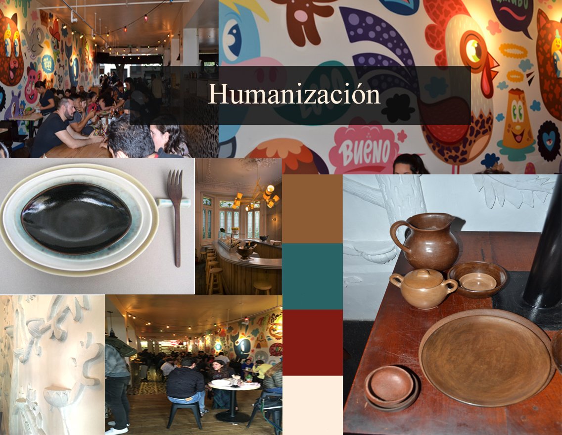 En cuanto al segundo aspecto que presentamos de la humanización, como es el trabajo colaborativo, tenemos que otro de los objetivos de Gaby y Eduardo ha sido una importante colaboración con otros diseñadores, artesanos y artistas. Es abundante la información que nos proporcionaron, porque además son tres restaurantes. Si bien sólo me referiré a los diseños que le dieron un toque distintivo a cada uno, y sobre todo, a los colaboradores que cuentan con una página en internet.