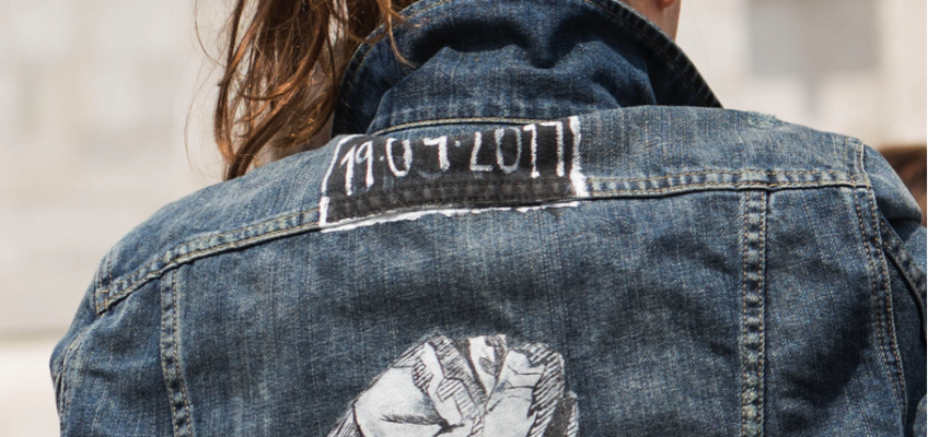 El símbolo social del puño cerrado, es la imagen gráfica del silencio, fuerza y unión y nos identifica a los mexicanos que vivimos en la tragedia del sismo que derrumbó muchos edificios y escuelas y daño casas habitación y oficinas en la CDMX. El sentido de unidad que conmovió a todos los mexicanos por igual sin distinción alguna, en la búsqueda de vida de seres humanos, perdidos o atrapados entre los escombros, hoy forma parte de ese recuerdo en nuestra memoria. Imagen que surge hasta la iconografía de la indumentaria y moda en la clásica chamarra de Denim o mezclilla, como la tendencia Mexa que nos une en un amplio sentido intrínseco, que nos comunica y nos sensibiliza al haber sido parte de ese evento que se instaló en nuestra memoria de lamento y en lo mas profundo del corazón de los ciudadanos de la capital y el resto de la República.